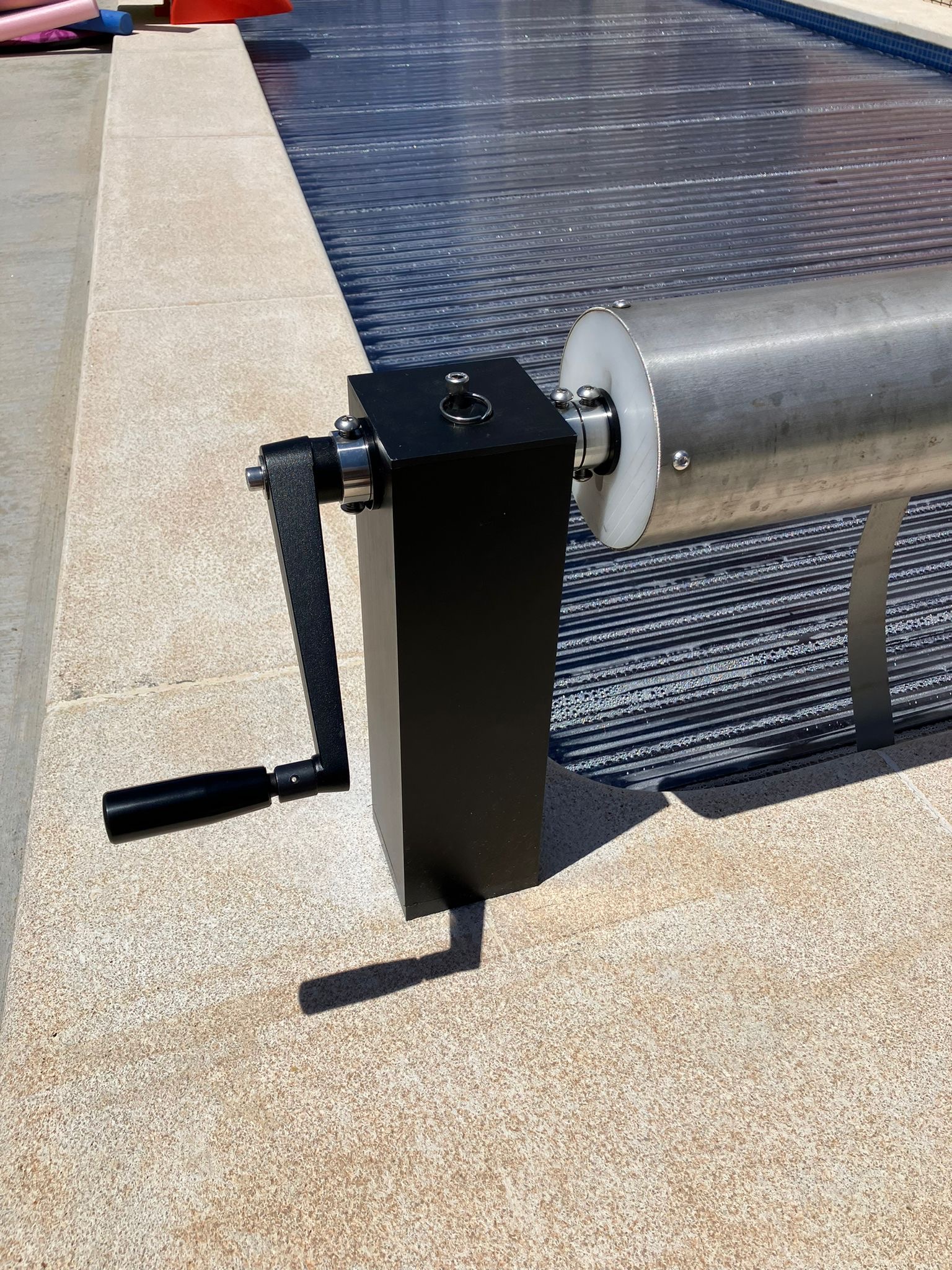 Met ons manuele oprolsysteem haal je een strak en simpel systeem in huis! Het is uitgerust met 2 stevige aluminium staanders en kan perfect worden gecombineerd met al onze lamellen. Het oprollen gaat eenvoudig met een zwengel aan één zijde van het systeem. Kies voor de staanders in blank aluminium of zwart, afhankelijk van jouw voorkeur. Dit systeem heeft een minimalistische uitstraling en wordt netjes aan de achterzijde van je zwembad geïnstalleerd. Kortom, ideaal voor wie op zoek is naar een betrouwbare en stijlvolle oplossing voor zijn zwembad!