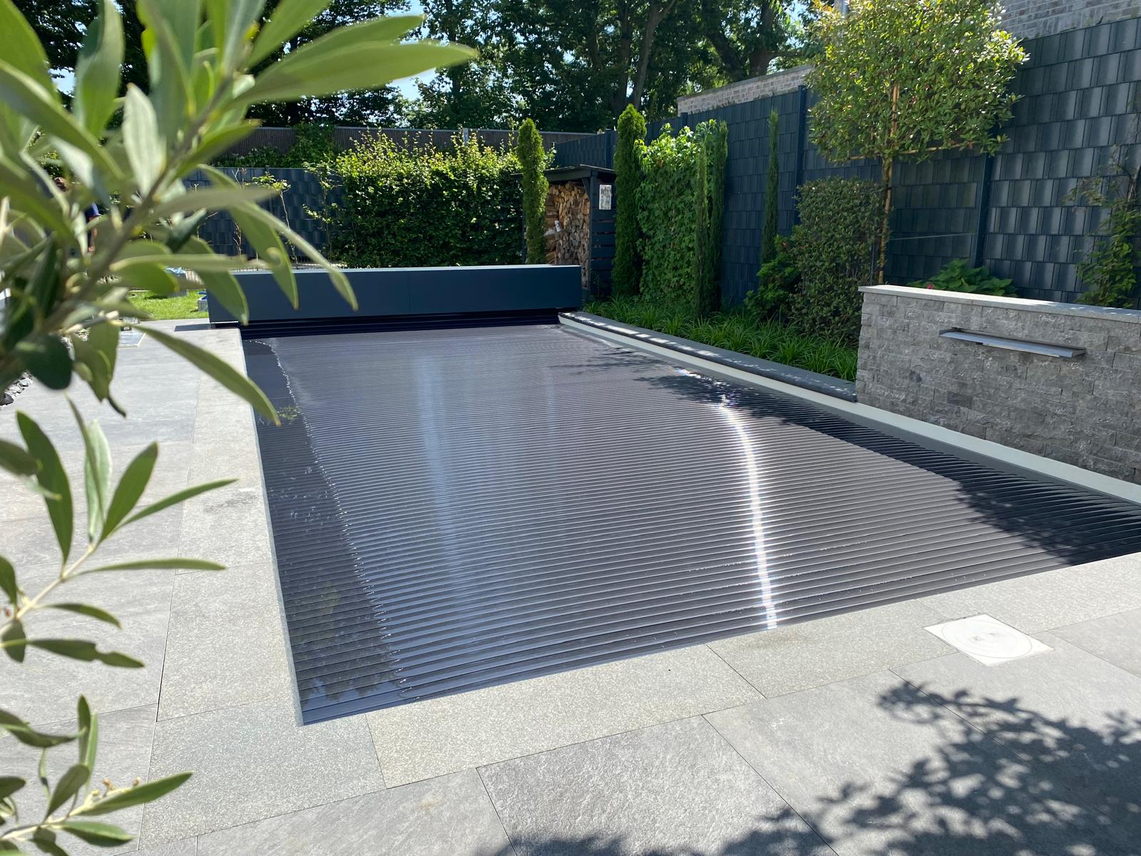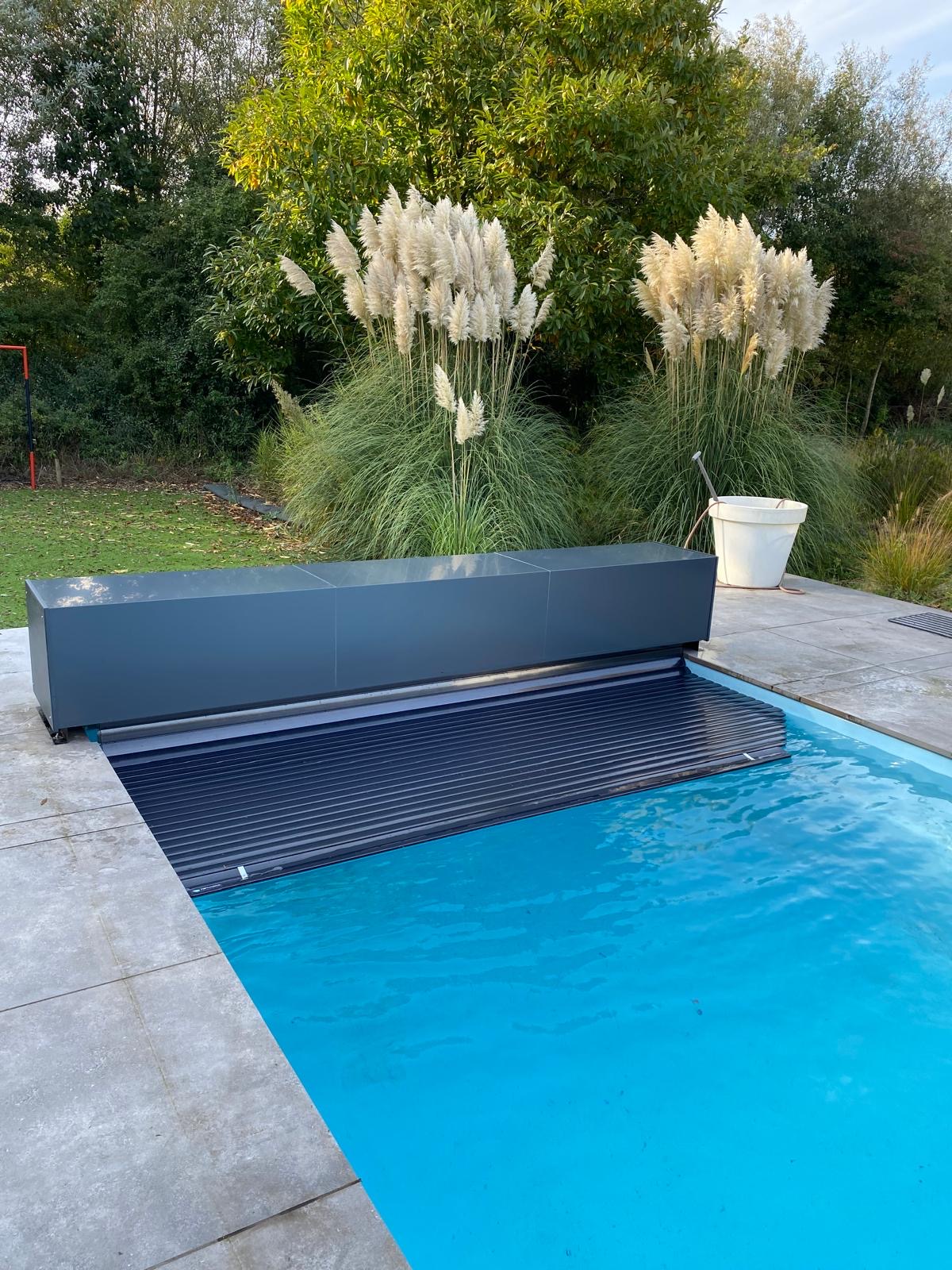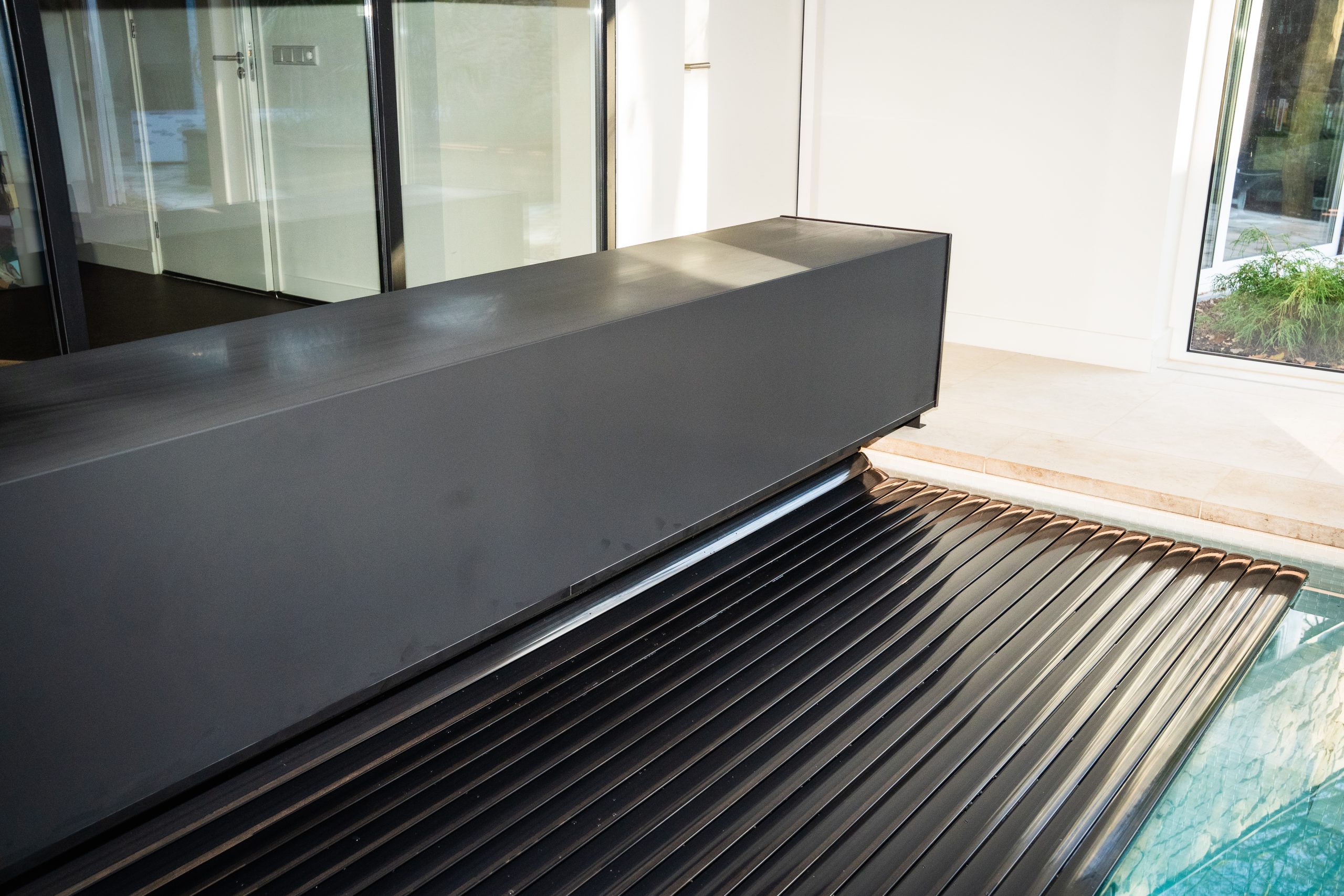 Dit automatische oprolsysteem met zwart geanodiseerd aluminium frame is de perfecte oplossing als je zelf de afwerking wilt bepalen. Je kunt het systeem afwerken met het materiaal van jouw keuze*, zodat het helemaal past bij de stijl van je zwembad. Het systeem werkt met al onze lamellen en met één druk op de knop rol je de lamellen moeiteloos op of af. Dankzij de stevige uitvoering verdwijnen de lamellen netjes uit het zicht. De automatische afdekking wordt achteraan je zwembad geïnstalleerd en is supermakkelijk in gebruik. Ideaal voor wie op zoek is naar een strak, functioneel én op maat gemaakt systeem!